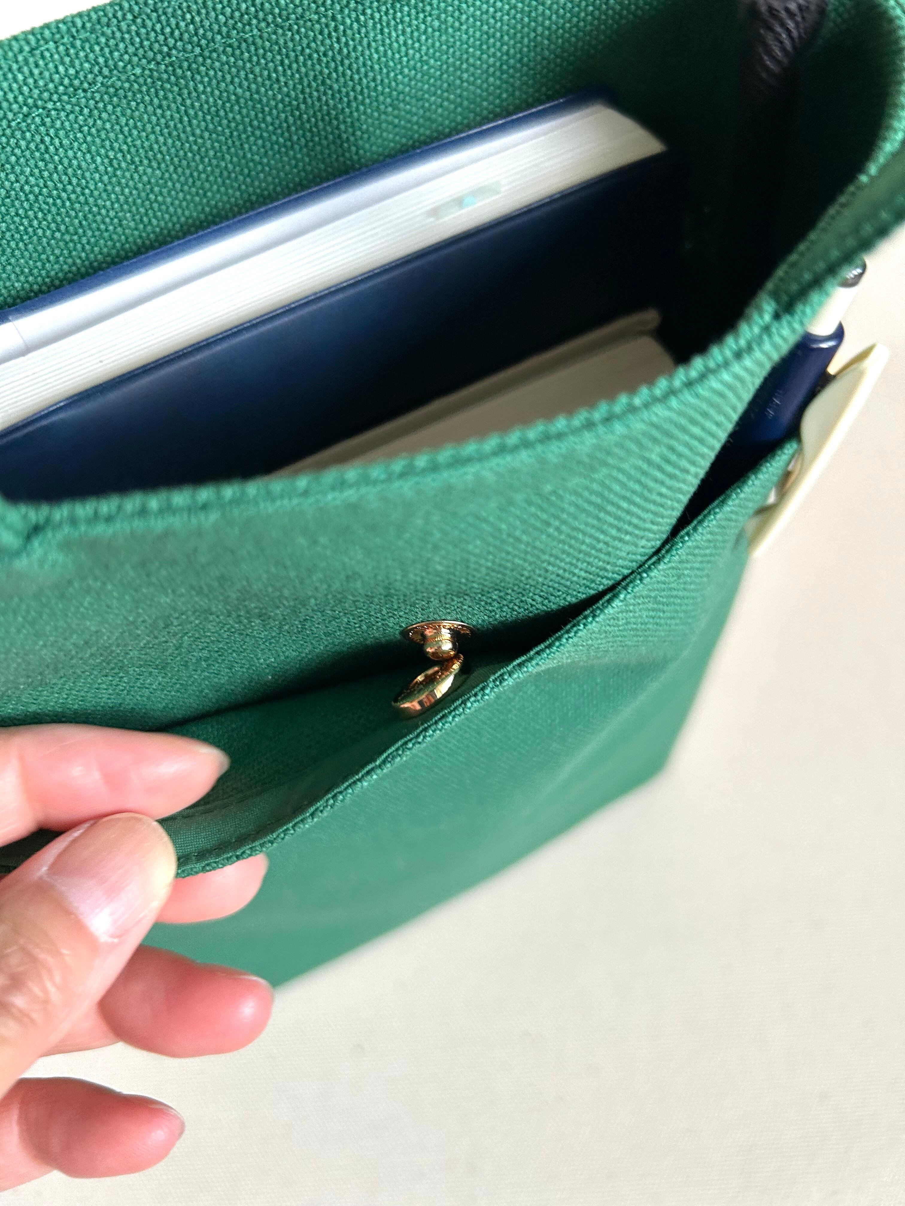 手帳一冊に薄いノート、2冊程度が入るサイズです。