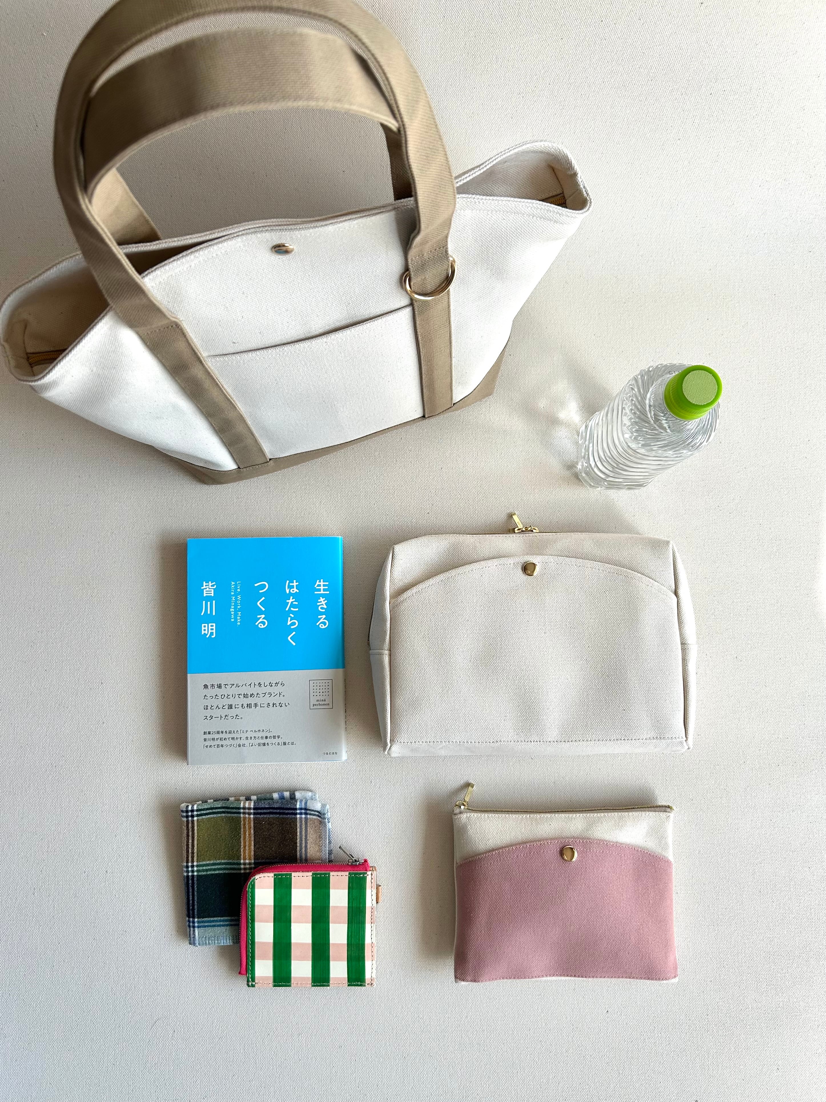 néeシリーズの、手帳のためのポーチがぴったり収まる、トートバッグができました!