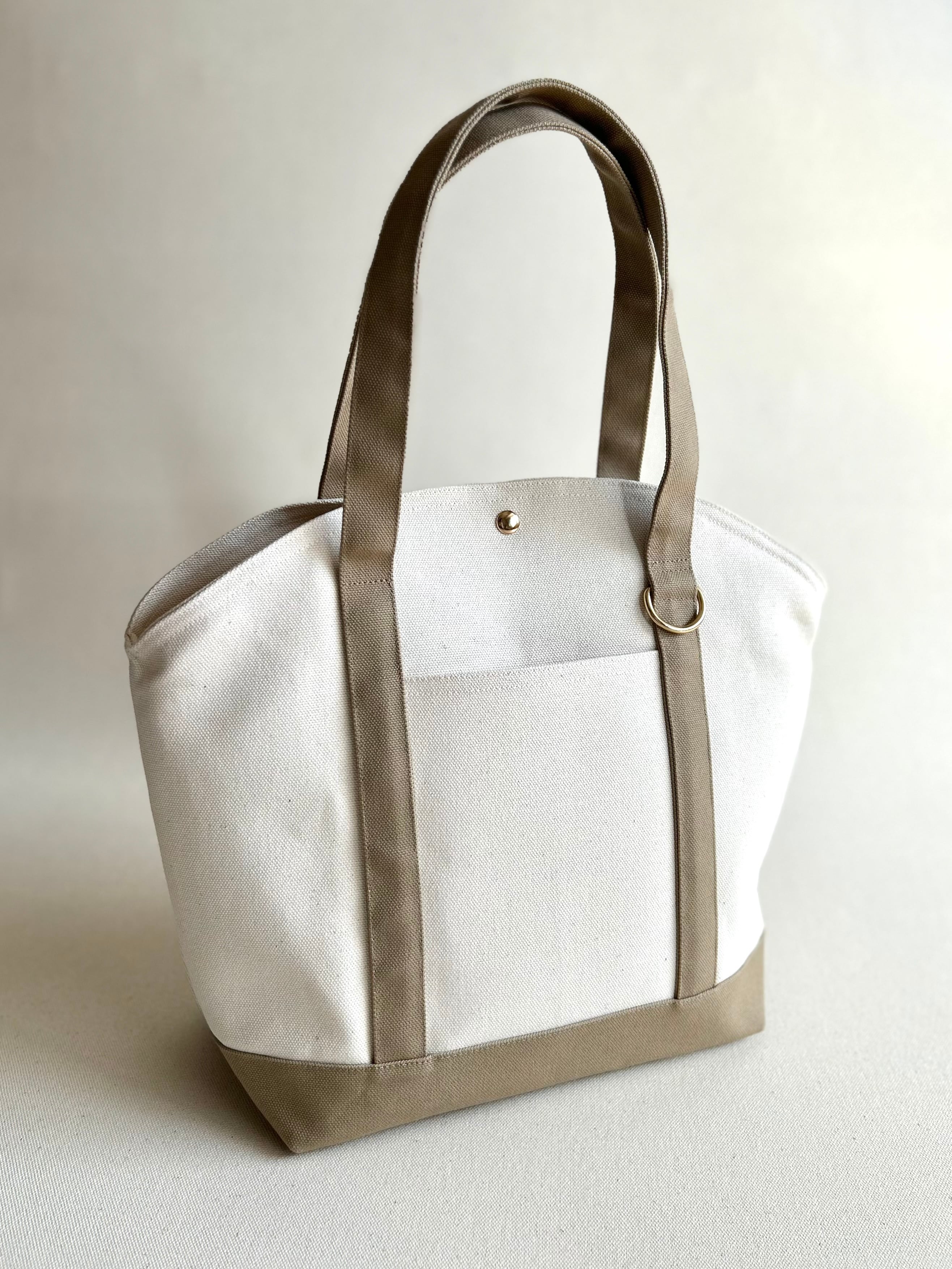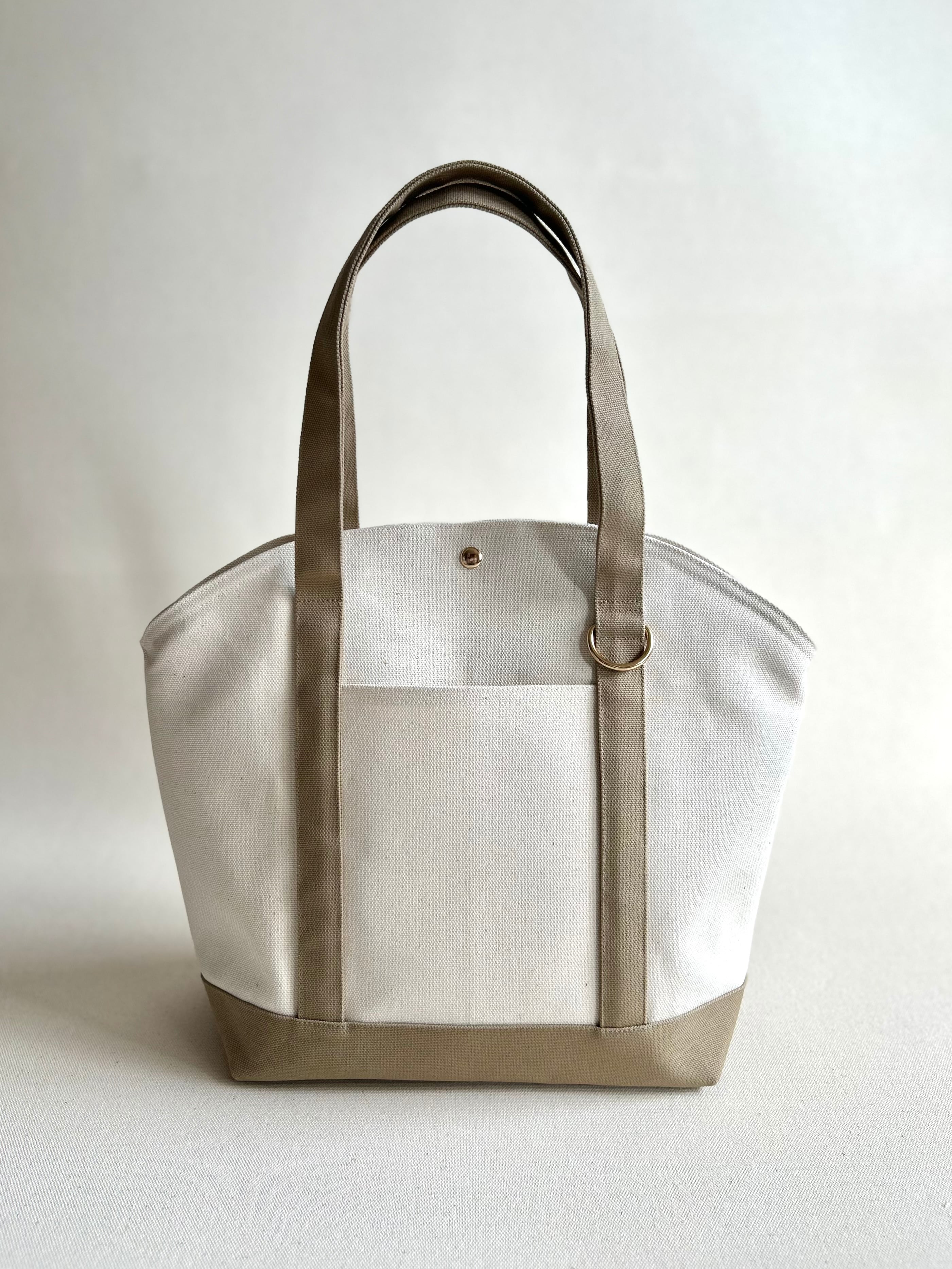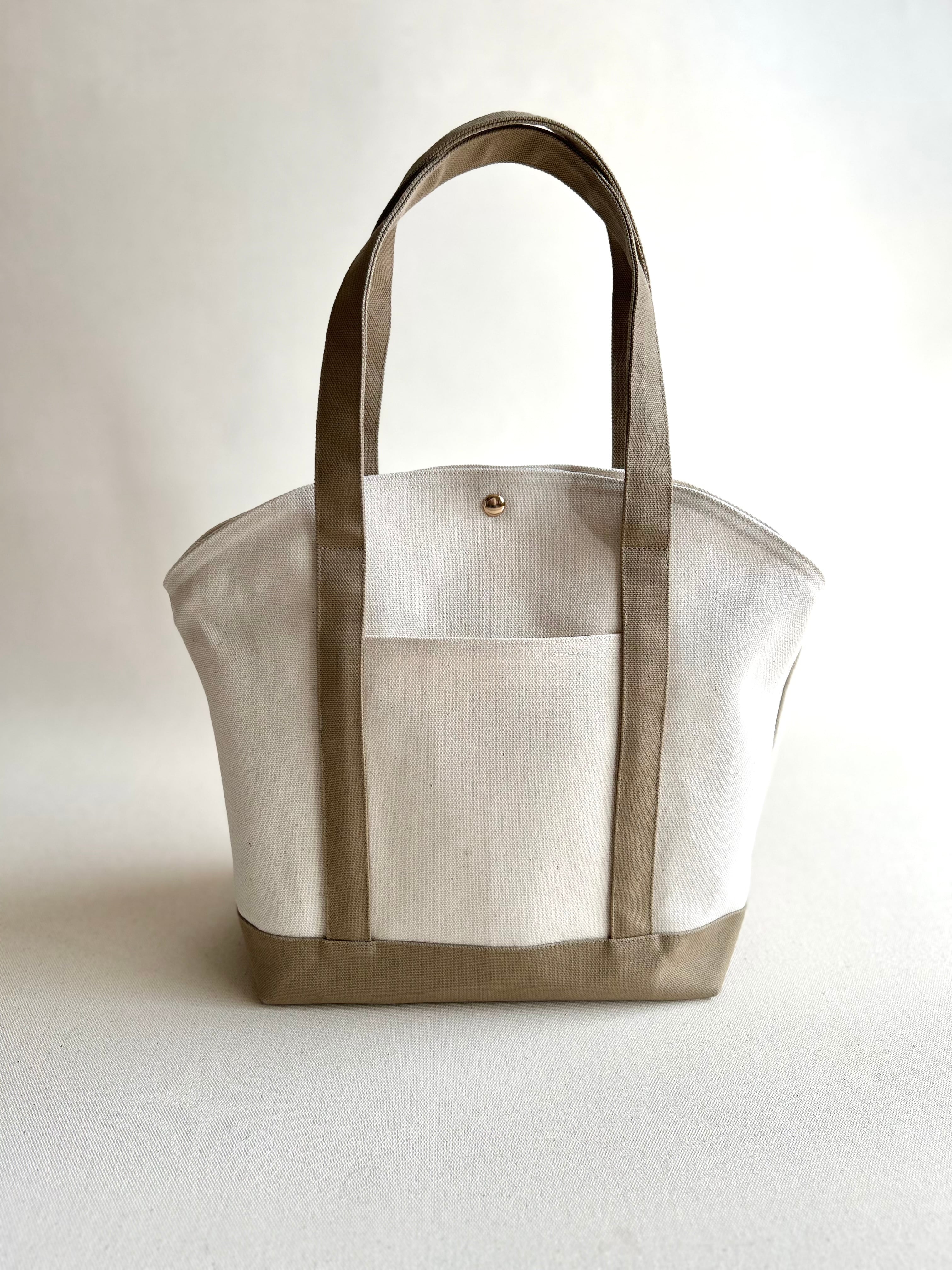 素材には、丈夫な国産帆布8号を使用。使い込むほどにやわらかく馴染み、風合いが増していく「育てるバッグ」として、帆布ならではの経年変化もお楽しみいただけます。